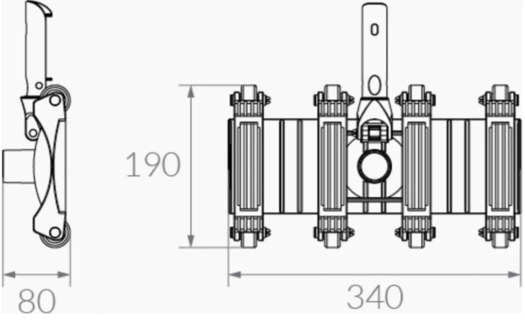 • Limpiafondos flexible de 8 ruedas fijas, de óptimo desempeño ya que se adapta a las pequeñas irregularidades de las superficie. Su diseño le aporta resistencia a los impactos.